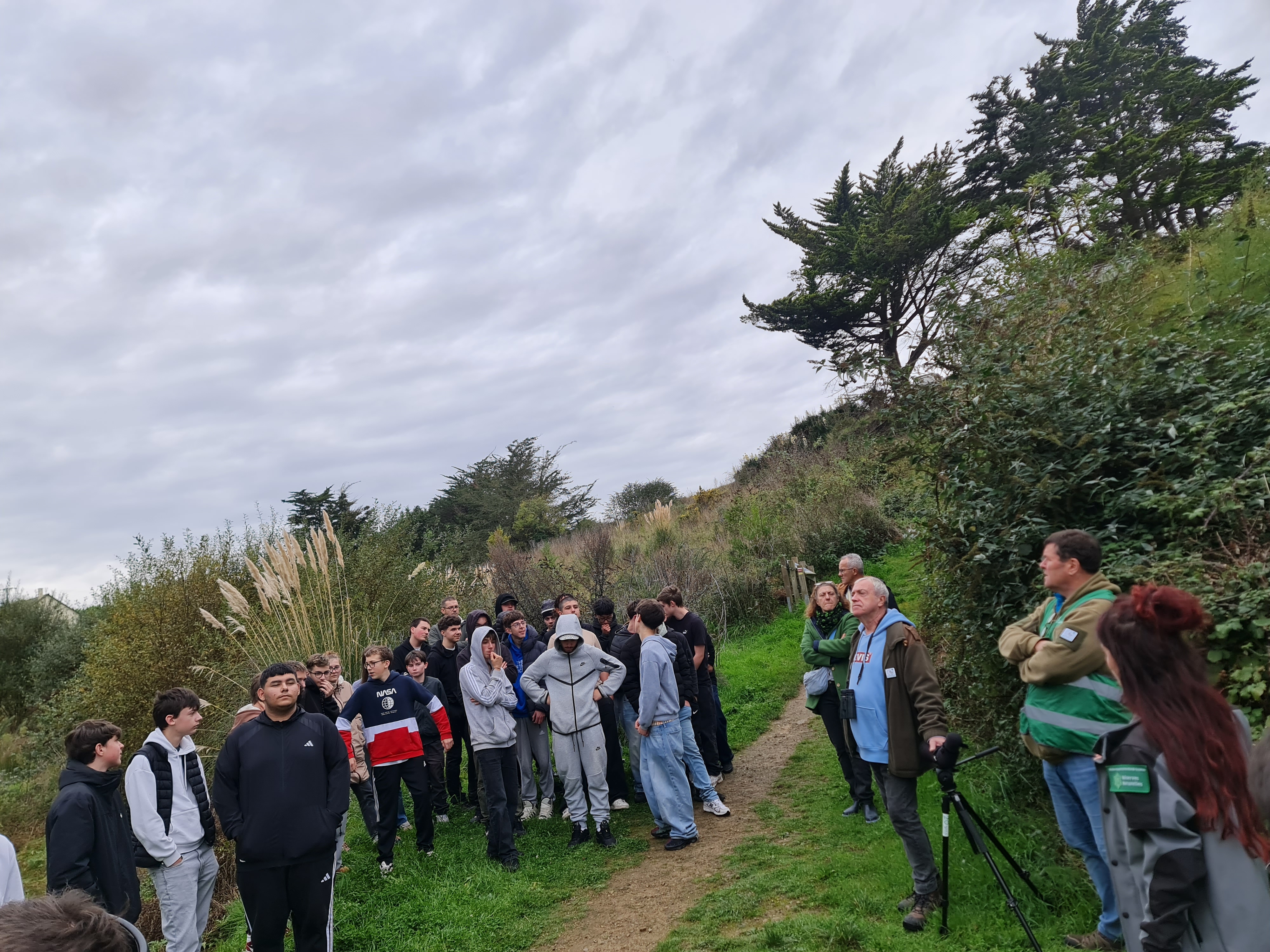 Le 13 novembre, les élèves se sont rendus sur la plage de La Grandville à Hillion pour faire des prélèvements de macrodéchets (plus de 2 cm) en respectant le protocole fourni. La Garde de la réserve naturelle de la baie de Saint Brieuc, Mme Chevreuil, ainsi que plusieurs bénévoles étaient sur place pour présenter le lieu aux élèves.